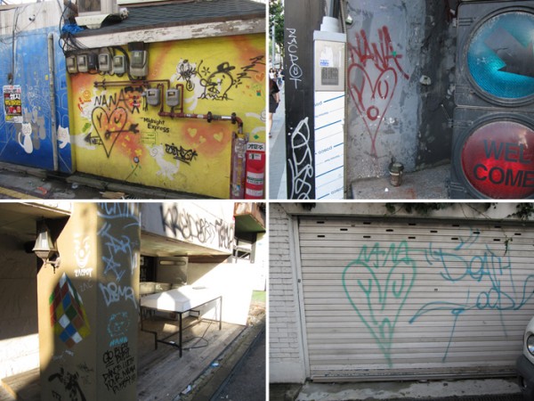 나나(NANA) 아마도 위에 그래피티뿐만 아니라 스프레이 사인류 스텐실류등